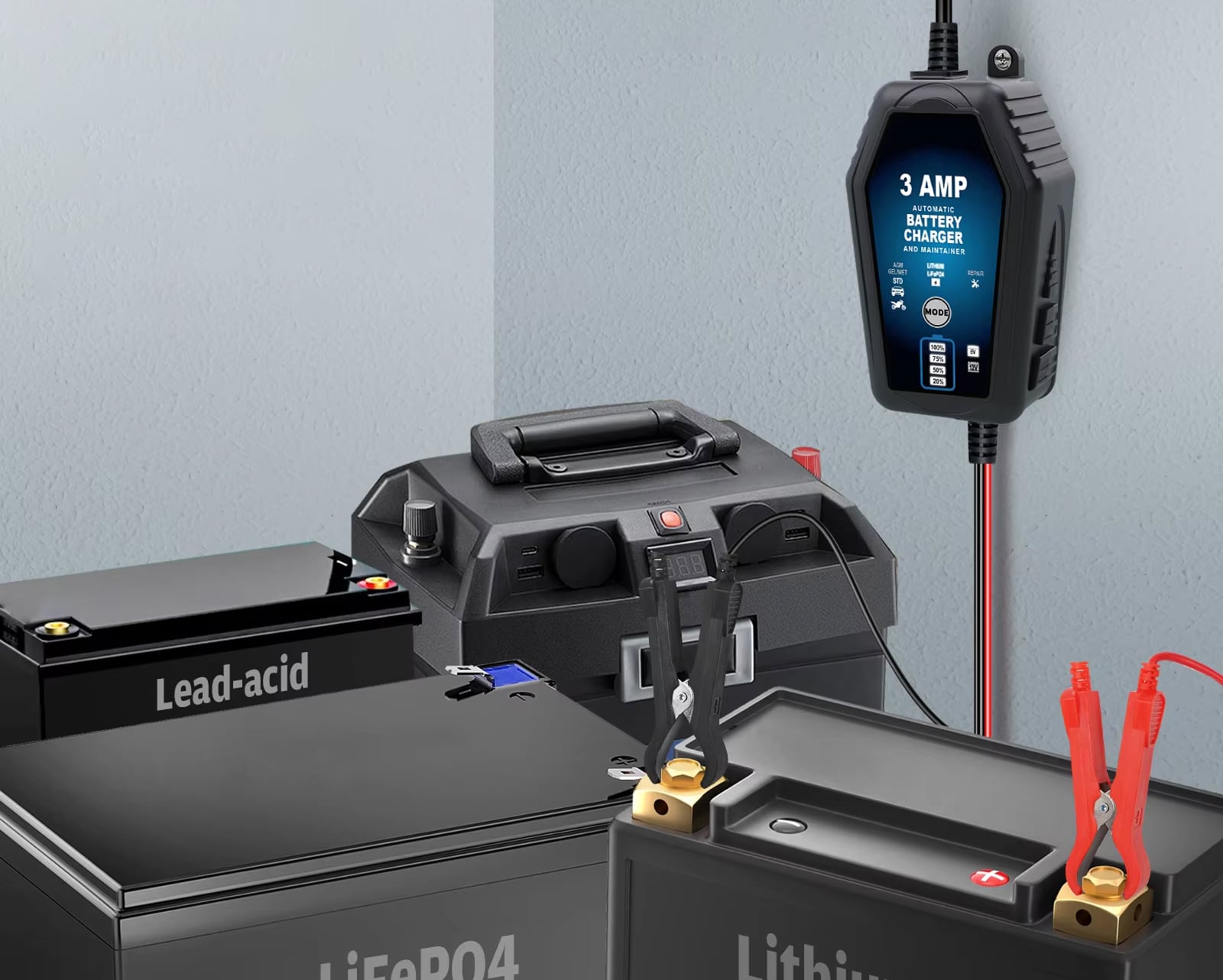 - Tension et ampérage appropriés - Assurez-vous que le chargeur correspond à la tension de votre batterie (6V, 12V, 24V) avec un ampérage adapté à sa capacité.